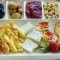 peynir, zeytin, kaşar, domates, salatalık, yumurta, isteğe bağlı sahan haşlama omlet, tereyağı, nutella, patates kızartması (1 çay ile sınırlıdır.)